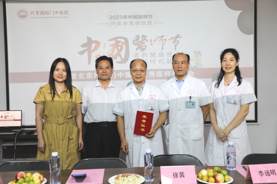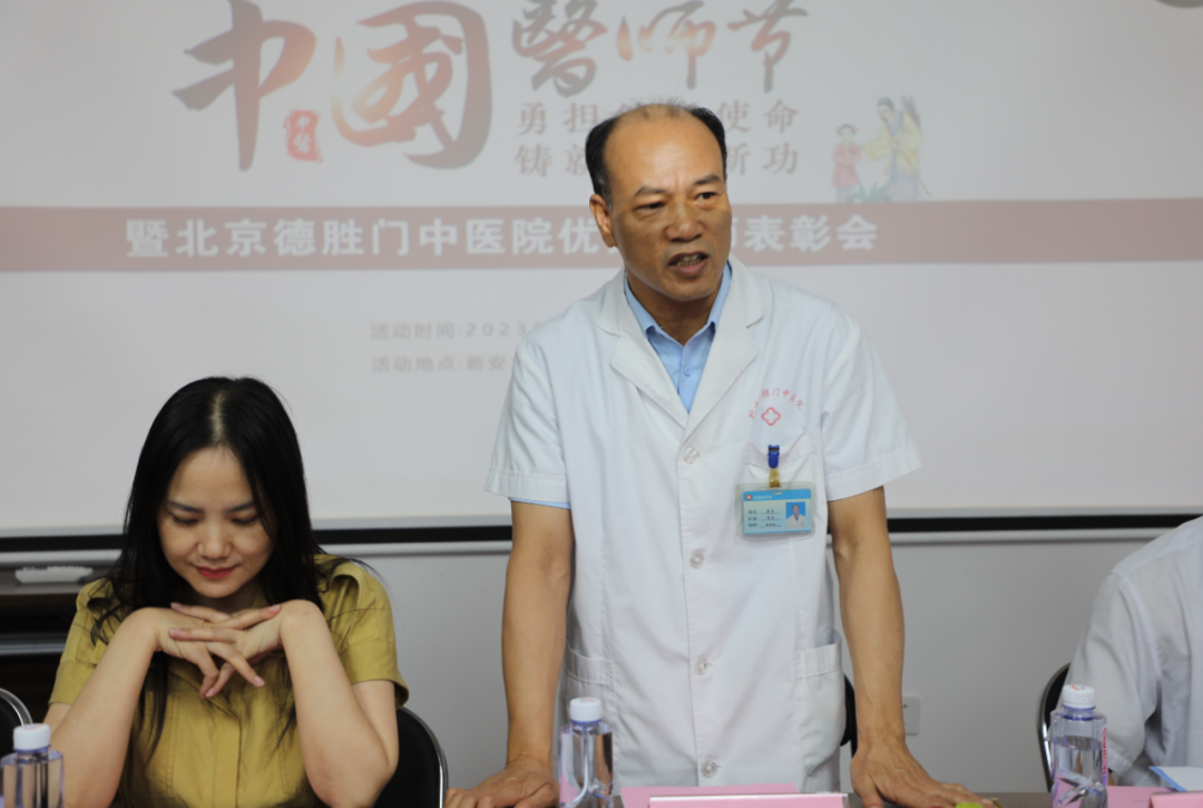 北京德胜门中医院院领导向全院医务工作者致以节日问候,并向大会上获表彰的团队和个人表示热烈祝贺。